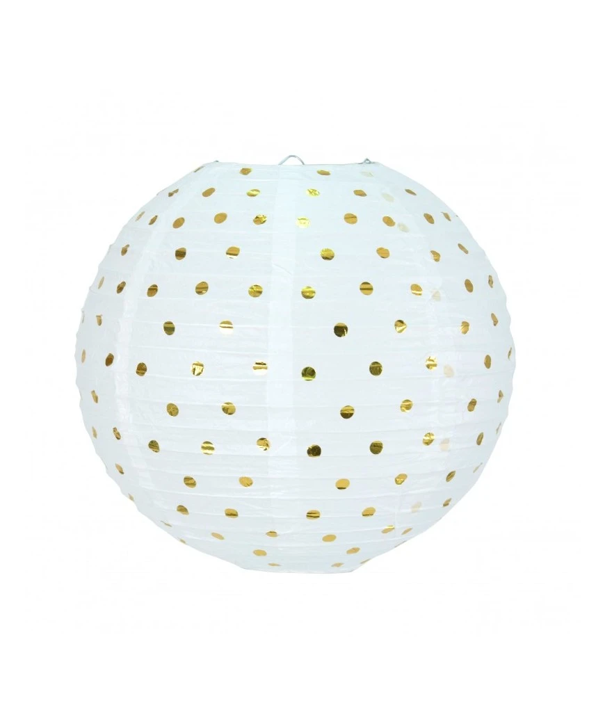 Lanterne Jap. Blanc Pois Or 35CM