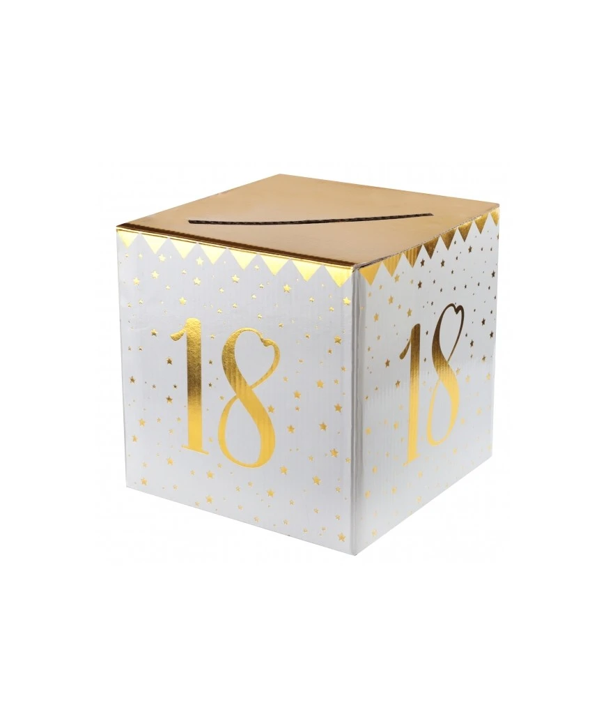 TIRELIRE BLANC OR 18 ANS (20x20x20CM)